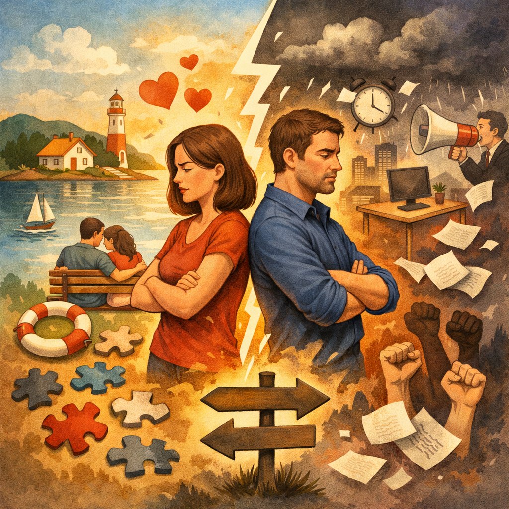 Ещё одна большая иллюзия нашего общества, что семья должна быть тихой гаванью, где каждый партнёр должен получать от другого принятие и поддержку и восстанавливаться от борьбы с внешним миром.
